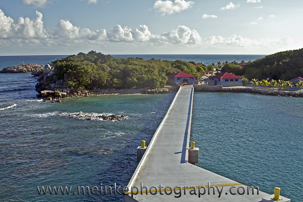 The first port was supposed to be Orangestad, Aruba. However, there was a medical emergency that was serious but not life-threatening, so we were redirected to Labadee, Haiti. Another RCL Ship on it’s way back to Port Everglades would meet us there so we could transfer the patient. Here is a shot of the pier as we arrived: