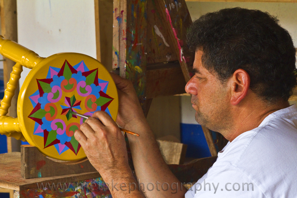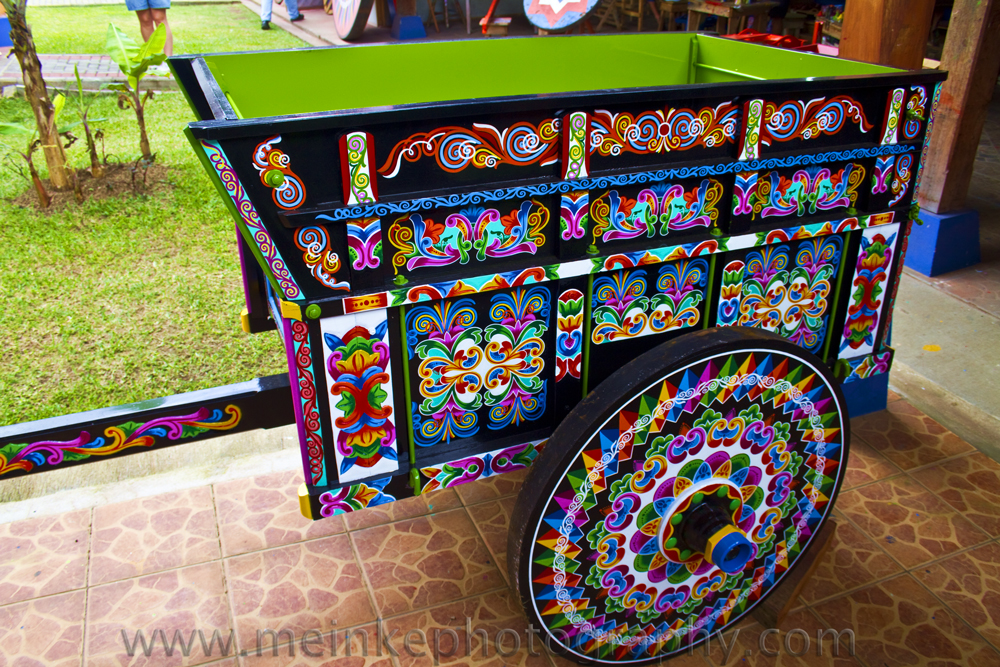 The town of Sarchi is known for artisans that build wooden stools, wagons and chairs that are all brightly hand painted.