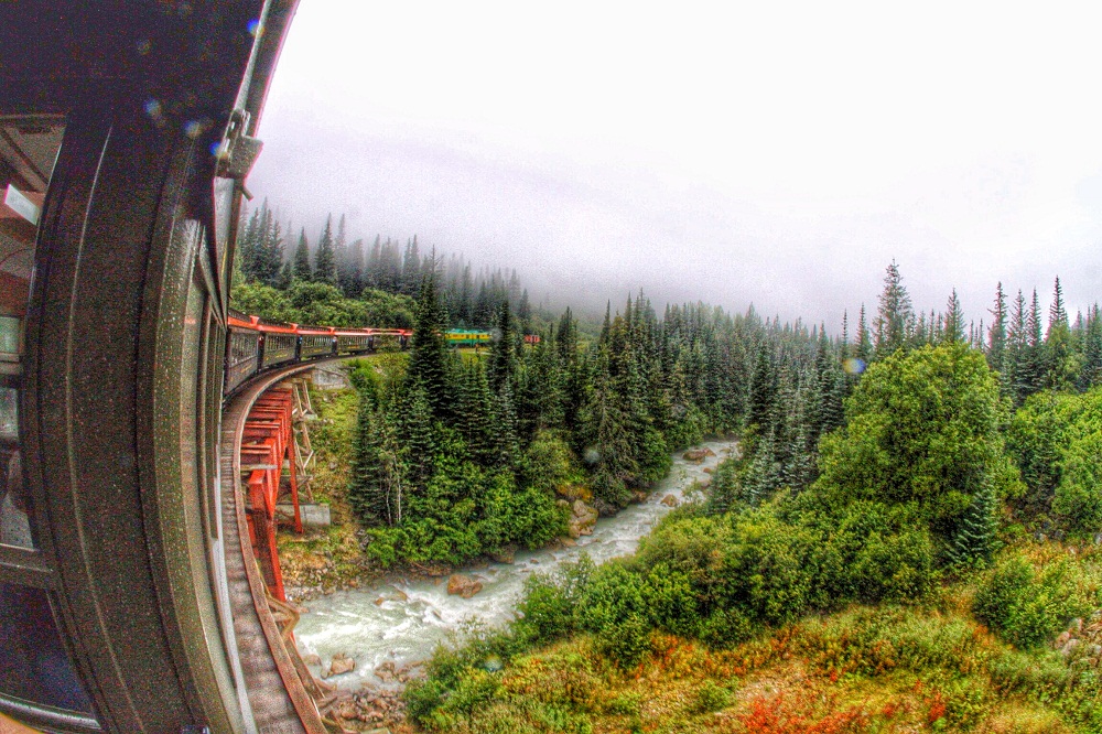 Now, where were we… Ah yes, the “free” excursion. Rather than take the train both ways, we opted to take the bus up the Klondike Highway that parallels the train up to Fraser, British Columbia where we transferred to the train. The weather was not great. Quite foggy in the middle section of both ways but it did add an interesting element.