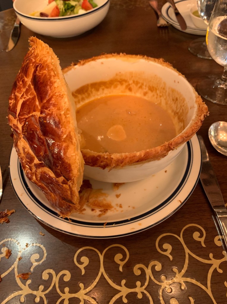 The most disappointing meal, portion-wise was at the Bistro. The taste and quality were excellent but… I ordered the seafood bisque. It cam out looking like this: