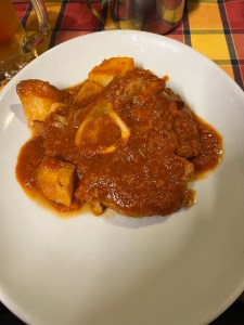 The other restaurant we enjoyed was Hosteria Trevi. I had Carbonara one night (Carbonara is my litmus test for Italian Food). The next night, I had Oso Bucco. Suzi had soup and an Omelet / Frittata. Here was my dish: