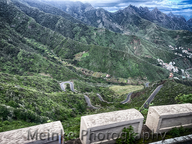 Next, and last stop before crossing the “pond”, was the Canary Islands, specifically, Tenerife. (Per our tour guide, Nico, it’s pronounces Tene-reef, not Tene-reefa.) We booked a tiur that took us over the Anaga mountain range to the other side of the island, Taganana. This is an extremely narrow, winding, road that sounds much like the Road to Hana in Hawaii.